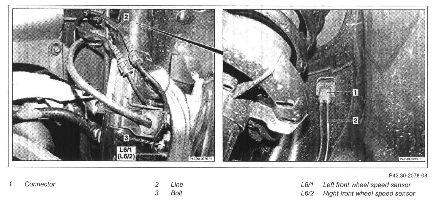 5 Expose cable (2) up to the left front speed sensor (L6/1)