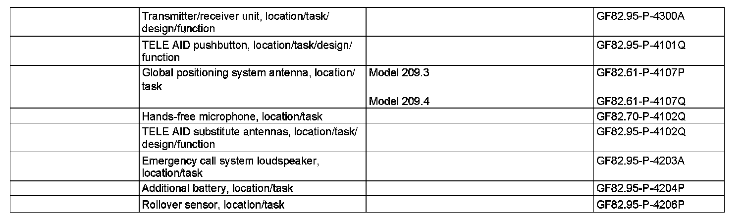 After an emergency call is triggered, the D2B telephone and TELE AID transmitter/receiver (A35/17) automatically generates an emergency call telegram. It includes the following information: