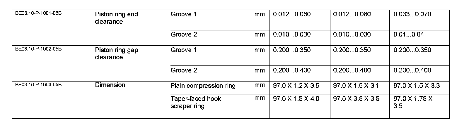 BE03.10-P-1000-05B Inspection Data of Piston Rings