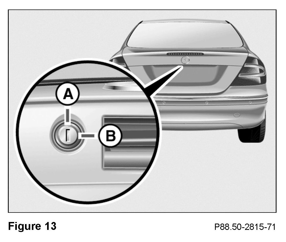 1. Verify proper trunk operation per the following checklist:> With the trunk lid lock tumbler in the neutral position (A, Figure 13), verify the trunk will open when: