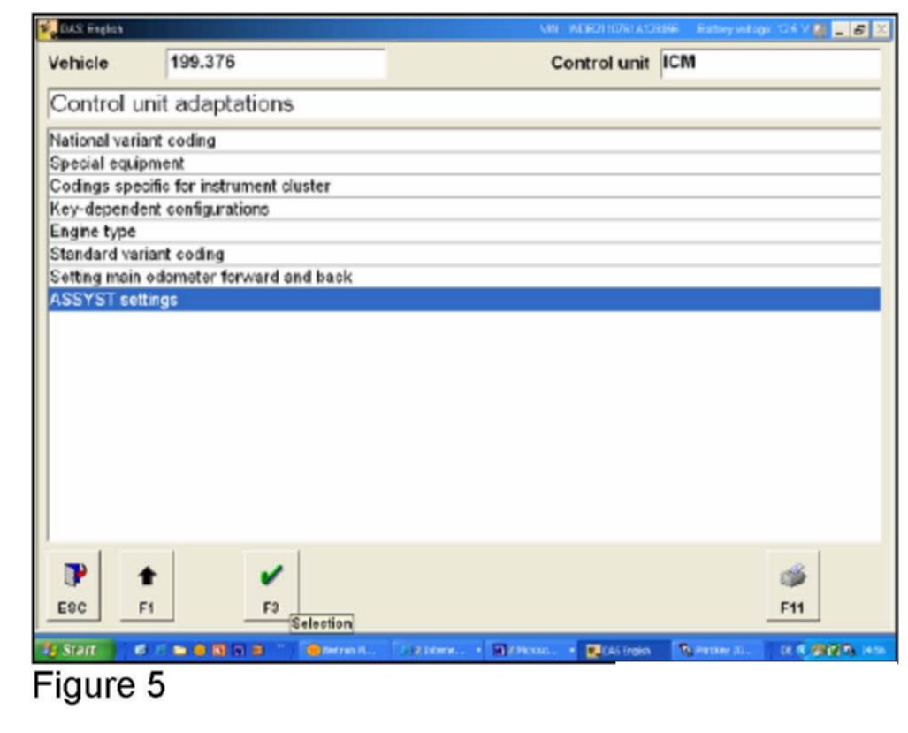 5. Select the ASSYST settings menu and confirm with F3 (Figure 5).