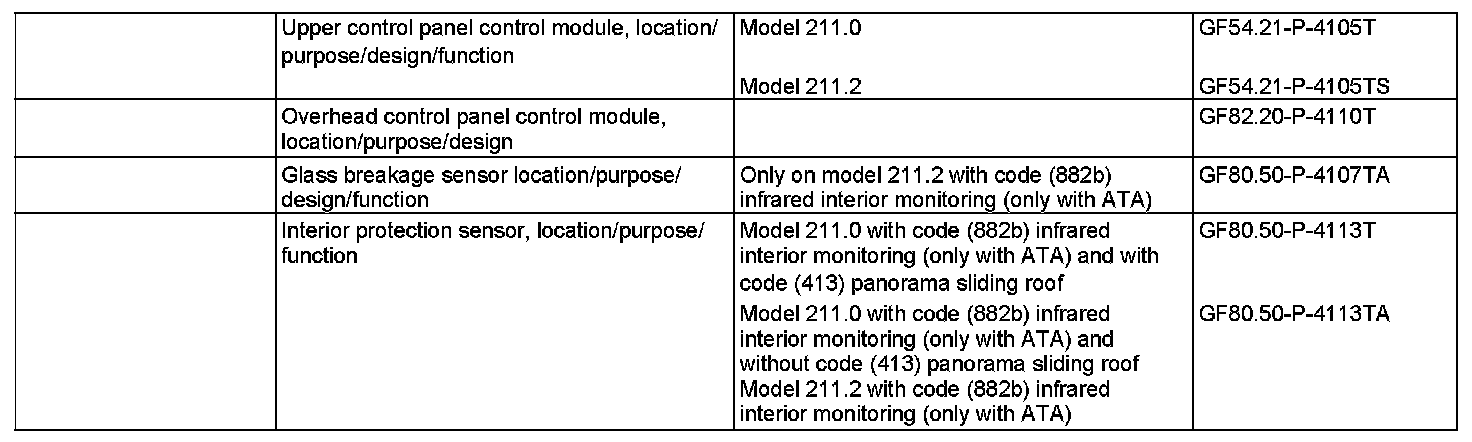 When the anti-theft alarm (ATA) is then activated the interior motion sensor (model 211.0) or the interior protection and glass breakage system (model 211.2) remain deactivated.