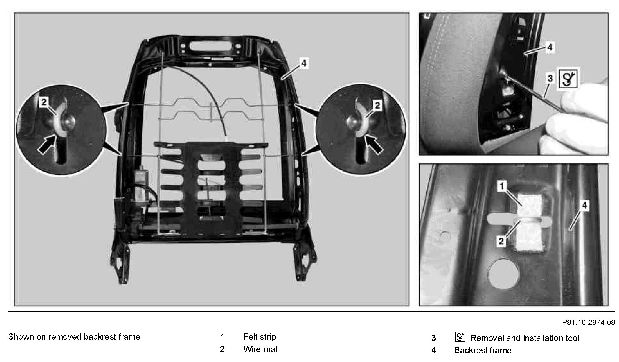 AR91.10-P-3332T Mount Felt Strips To Attachments On Front Seat Backrest