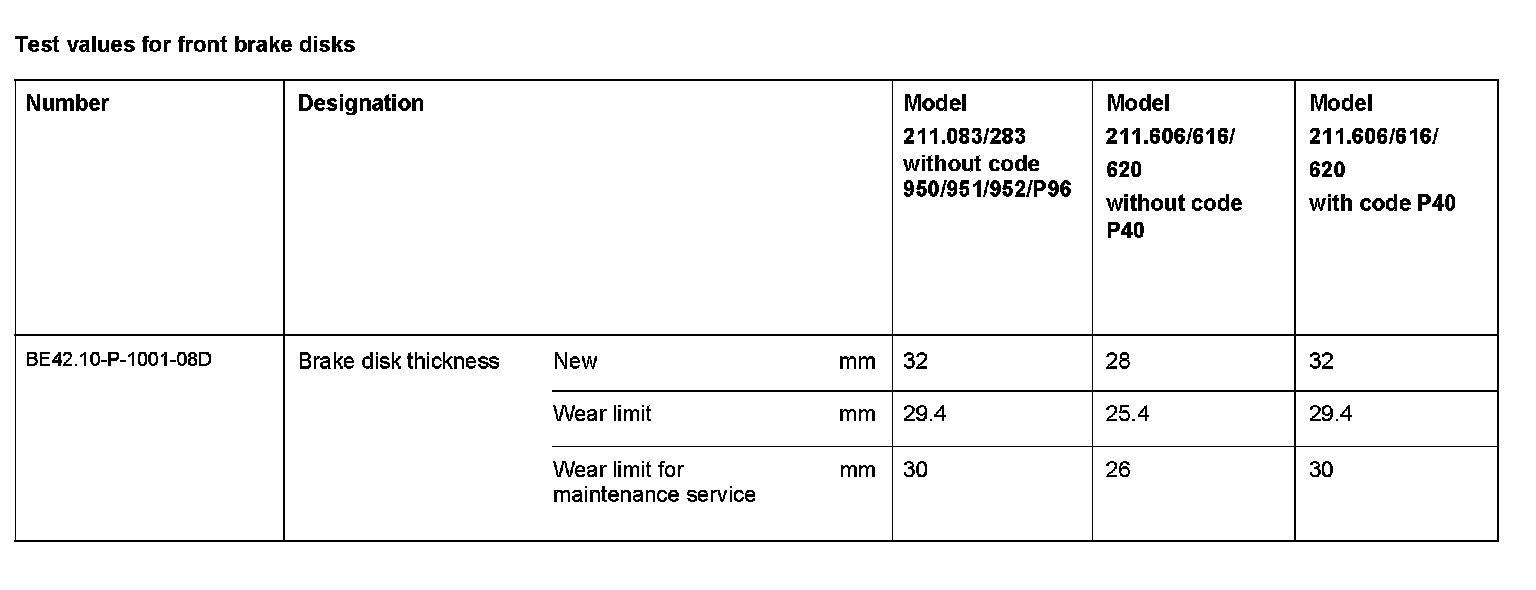 Test Values For Rear Brake Disks: