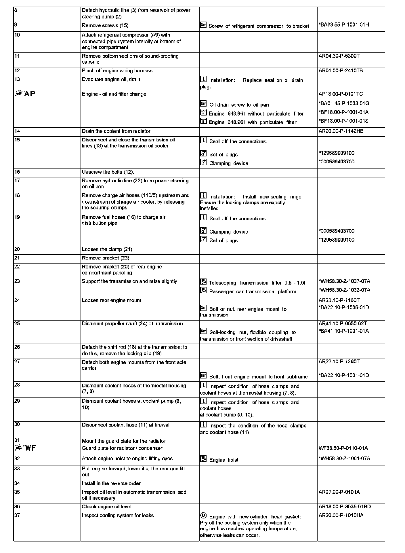 AR01.10-P-2400TA Remove/install engine