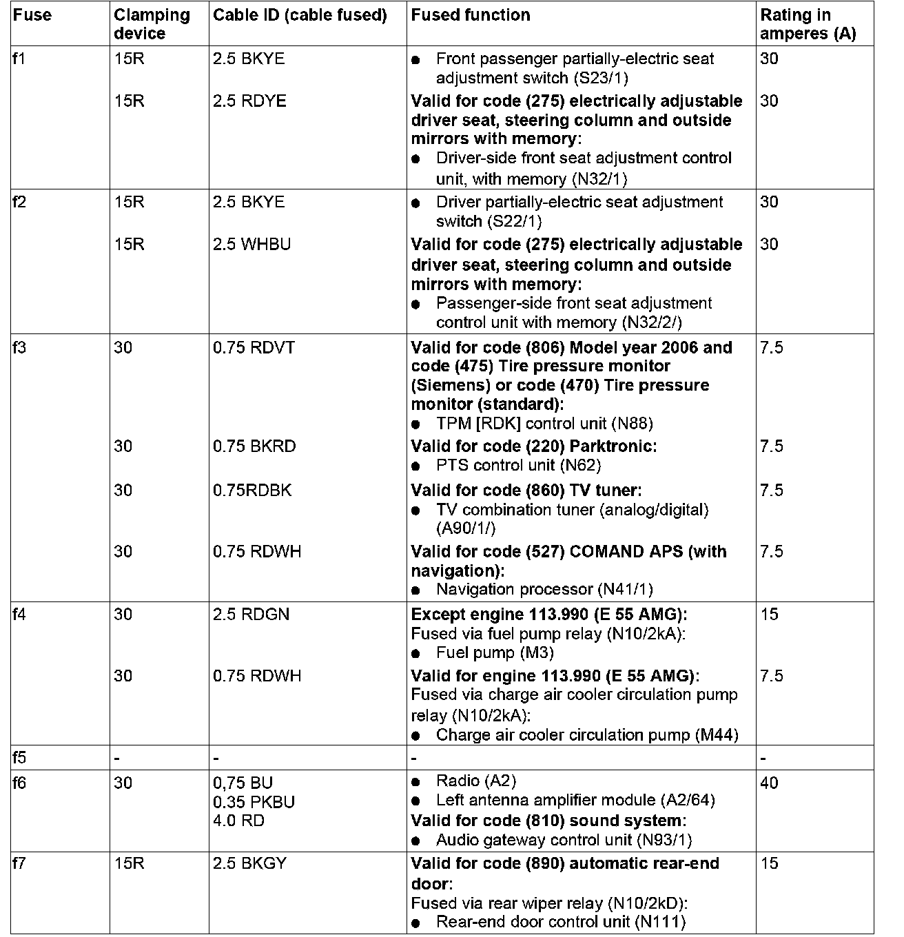 GF54.15-P-1256-06TB Fuse Assignment Of Fuse And Relay Box In Trunk