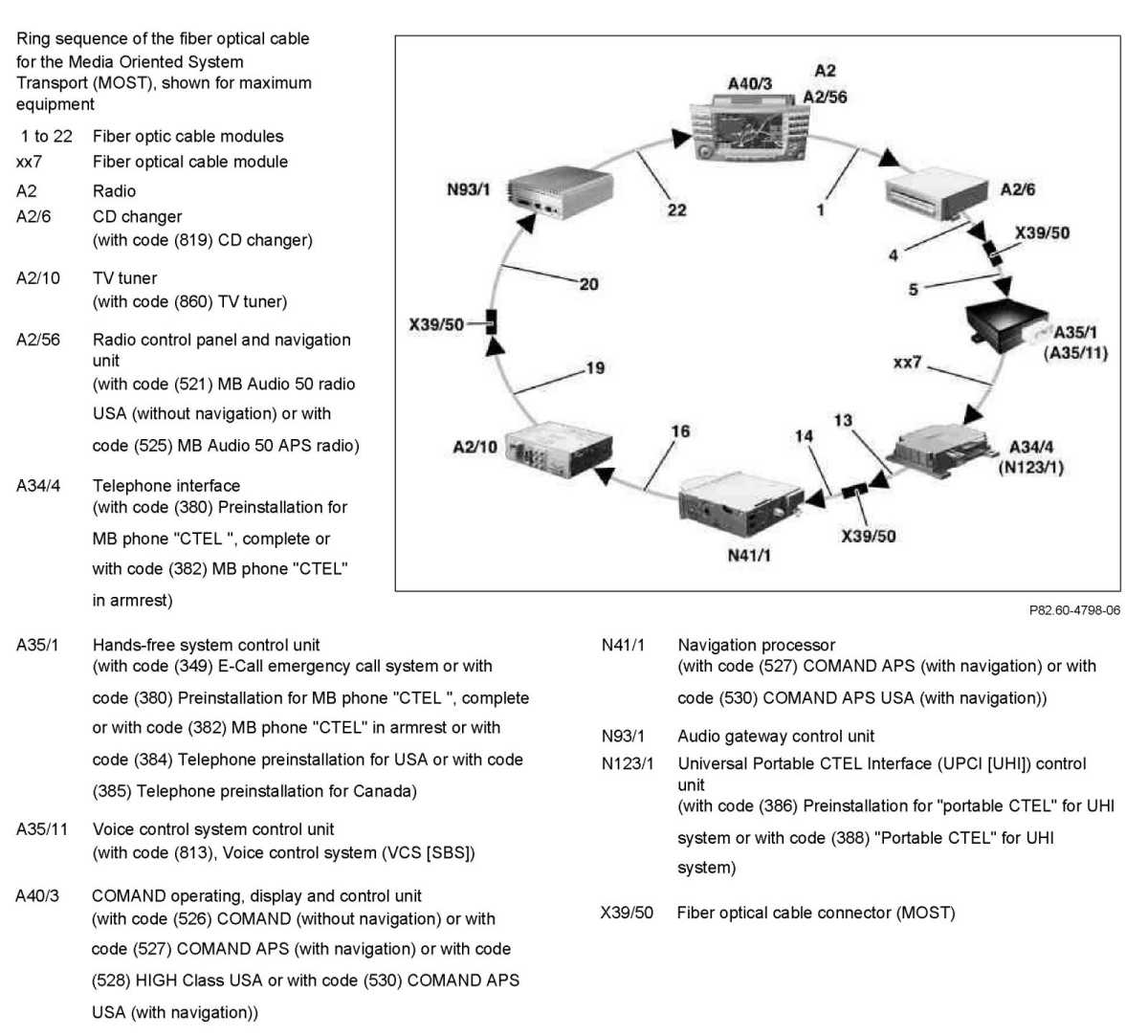- Fiber optic cable (MOST) between radio/COMAND and CD changer