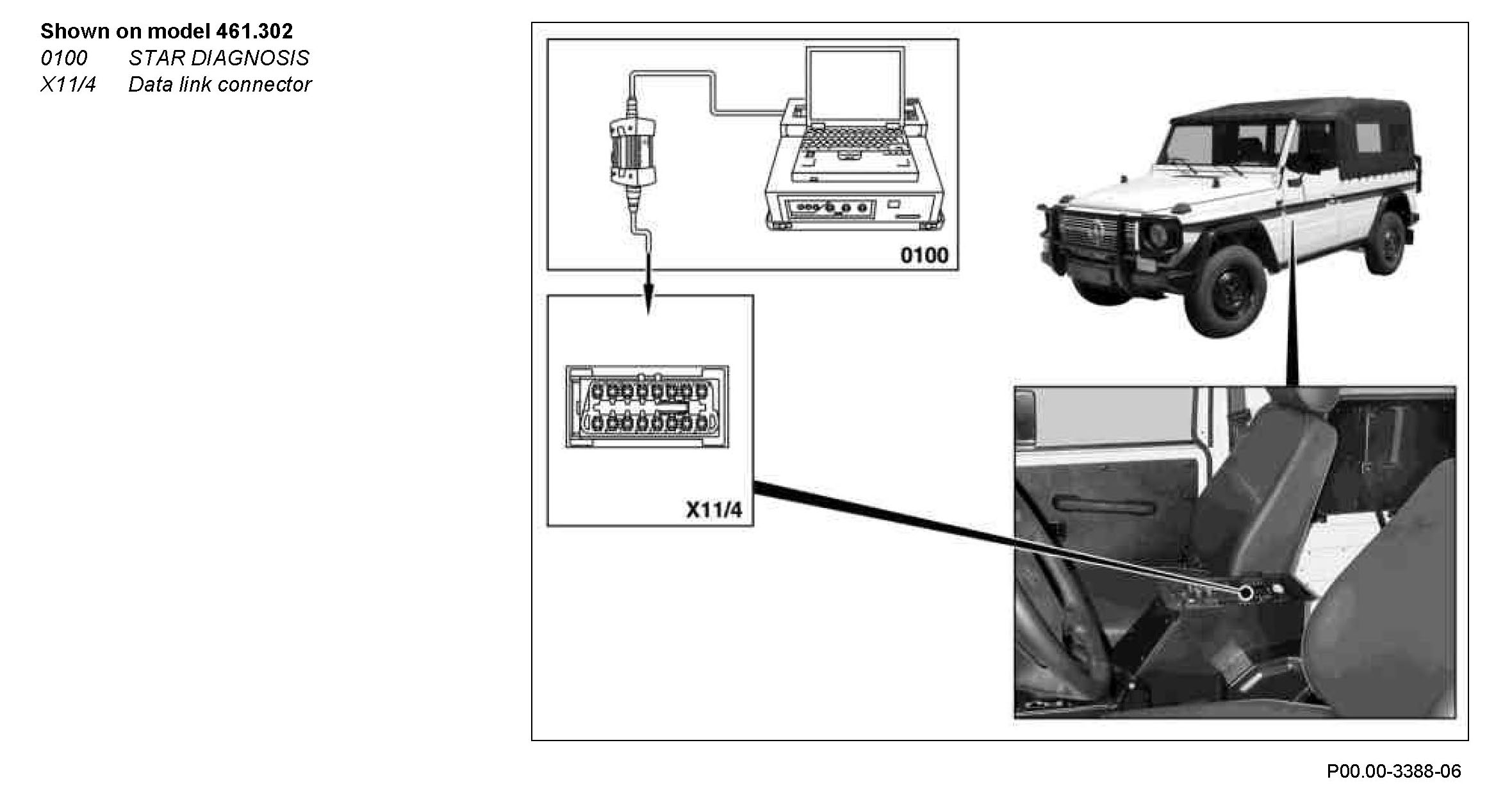 1 Connect STAR DIAGNOSIS (0100) to diagnostic socket, on the data link connector (X11/4) or on the data link connector (1.3) (X11/22).