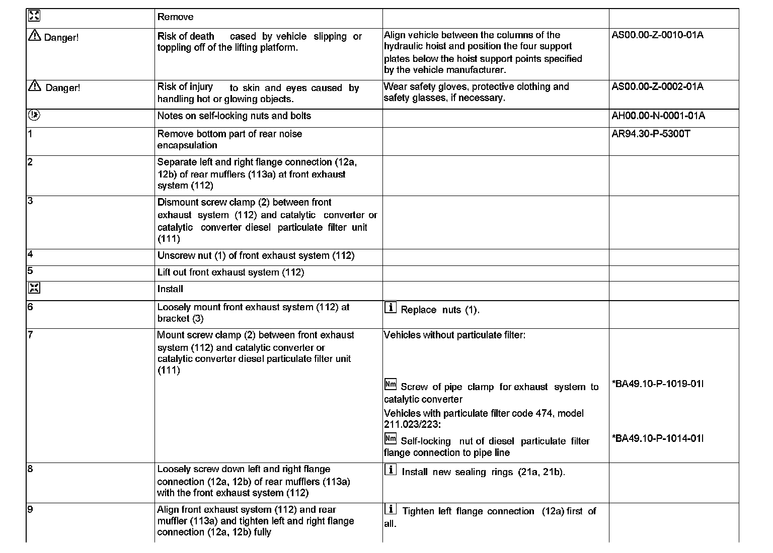 AR49.10-P-5531T Remove/Install Catalytic Converter or Front Exhaust System