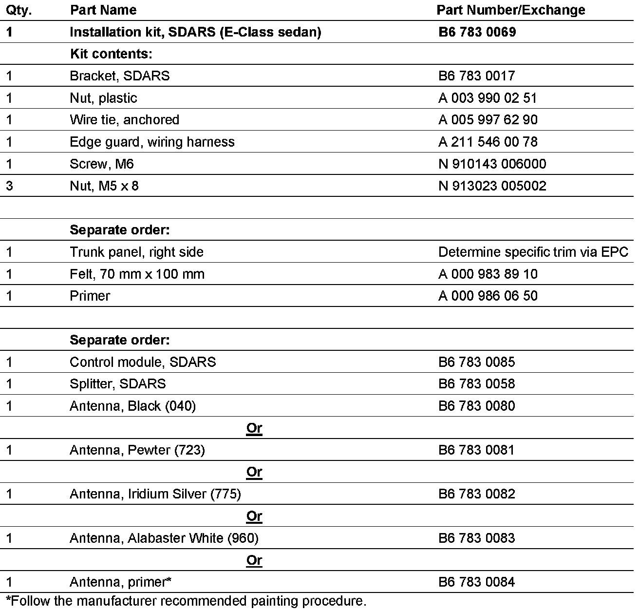 K. Parts Information