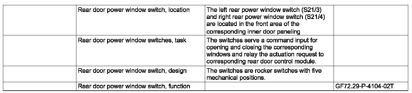 GF72.29-P-4104T Rear Door Power Window Switch, Location/Task/Design/Function