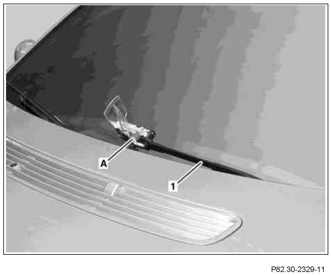 Shown on model 211, driver-side wiper arm (1) in reverse position