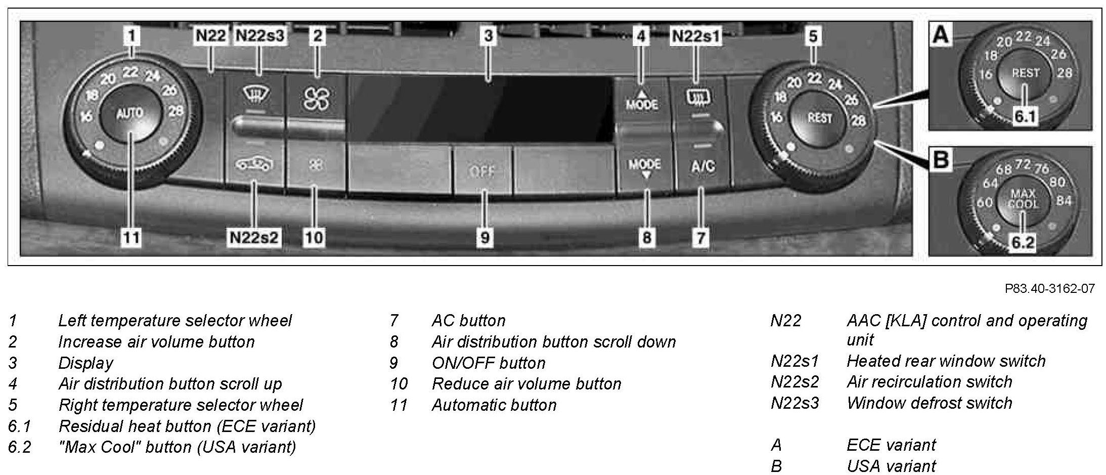 ^ Switch automatic air conditioning (AAC [KLA]) on and off