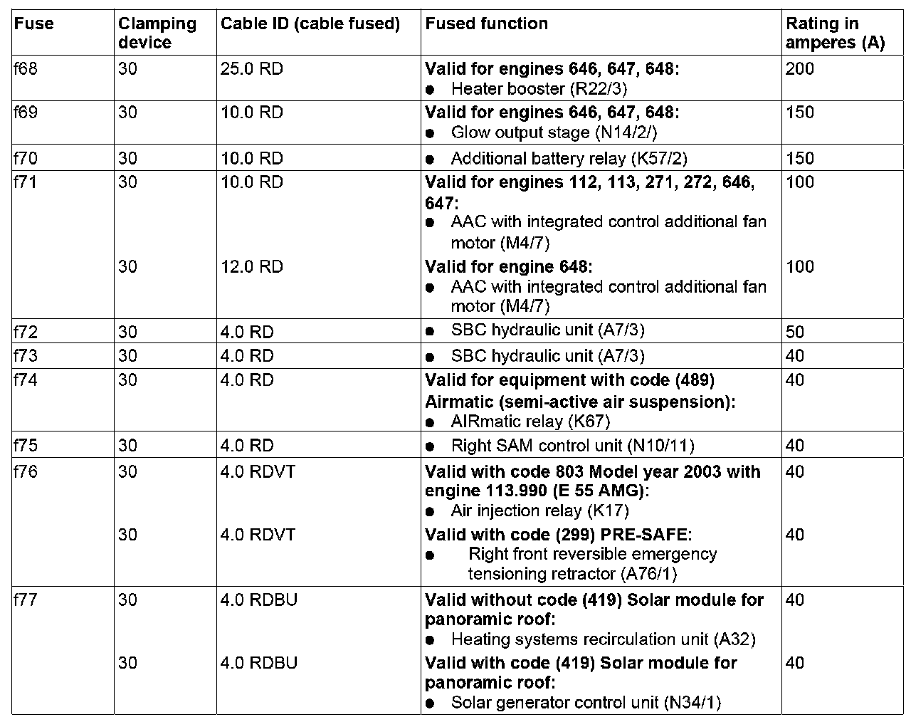 GF54.15-P-1256-07T Fuse Assignment Of Front Prefuse Box