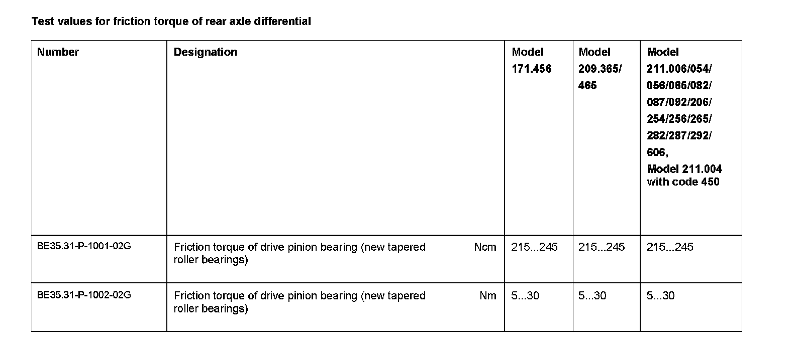 BE35.31-P-1000-02G Test Values For Friction Torque of Rear Axle
