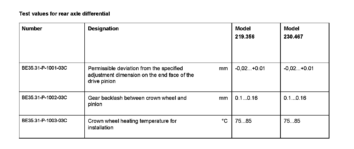 BE35.31-P-1000-03C Test values for rear axle differential