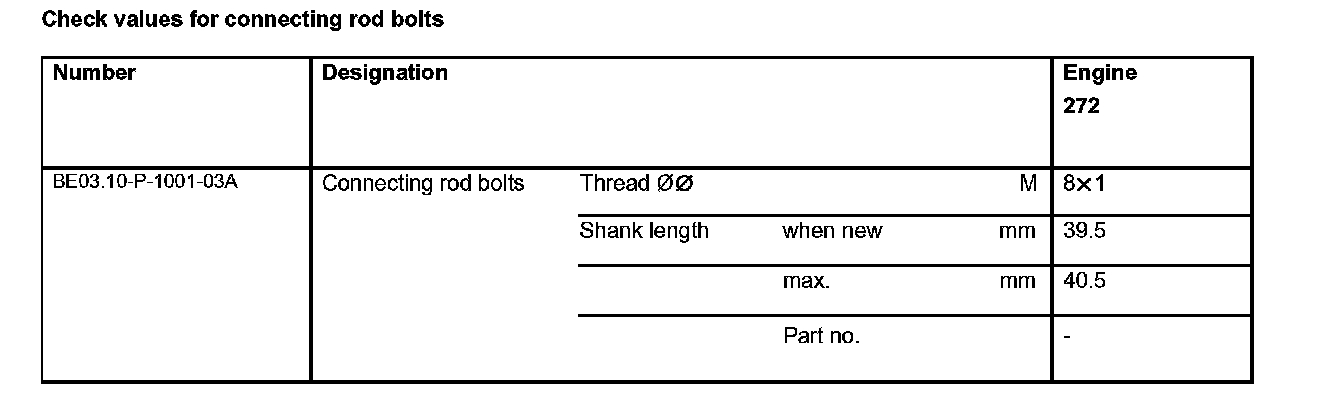 Check values for connecting rod bolts:
