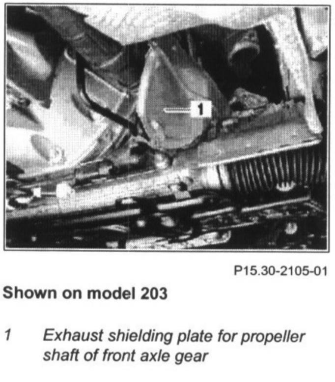 5 Dismount exhaust shielding plate (1) for propeller shaft front axle gear