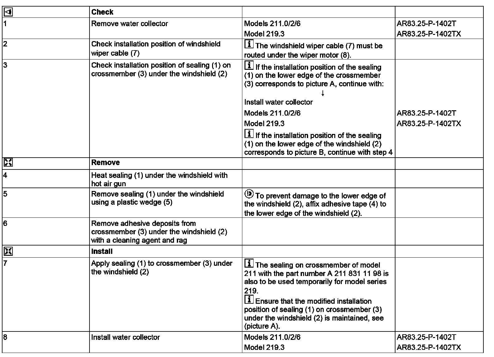 SM67.10-P-0003A Check Installation Position Of Sealing On Crossmember Under The Windshield - Model 211.### ## up to 767502