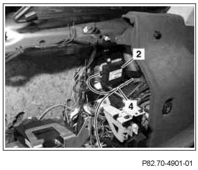 1 Route connection line for CTEL bracket (1) to the right knee bolster.