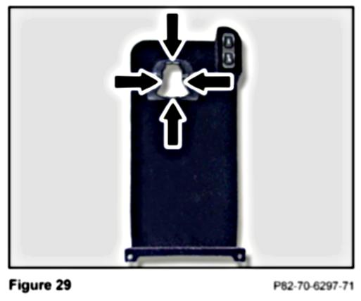 12. Reinstall the false floor with attached carriage with the previously removed four T8 Torx screws on the upper compartment underside and two T8 Torx screws at the rear of the false floor (Figure 36).