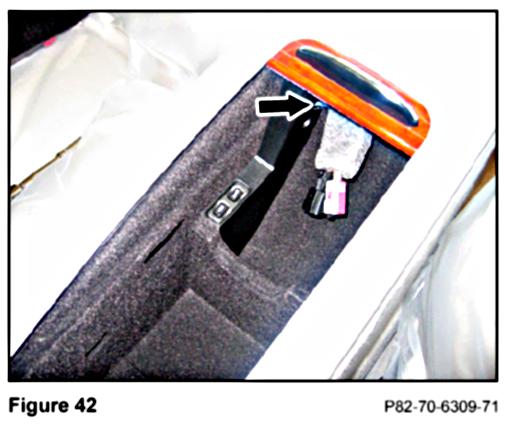 3. Find the foam sleeve (Figure 39) containing connectors in the area exposed by the removed Tele Aid/Roadside Assistance button assembly.