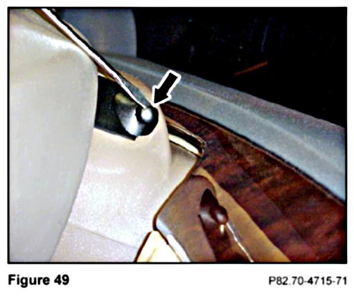 1. Remove the plastic plug covering the mounting hole for the PTT lever on the right side of the steering column by carefully inserting a small flathead screwdriver into the slot and prying it out (Figure 49).