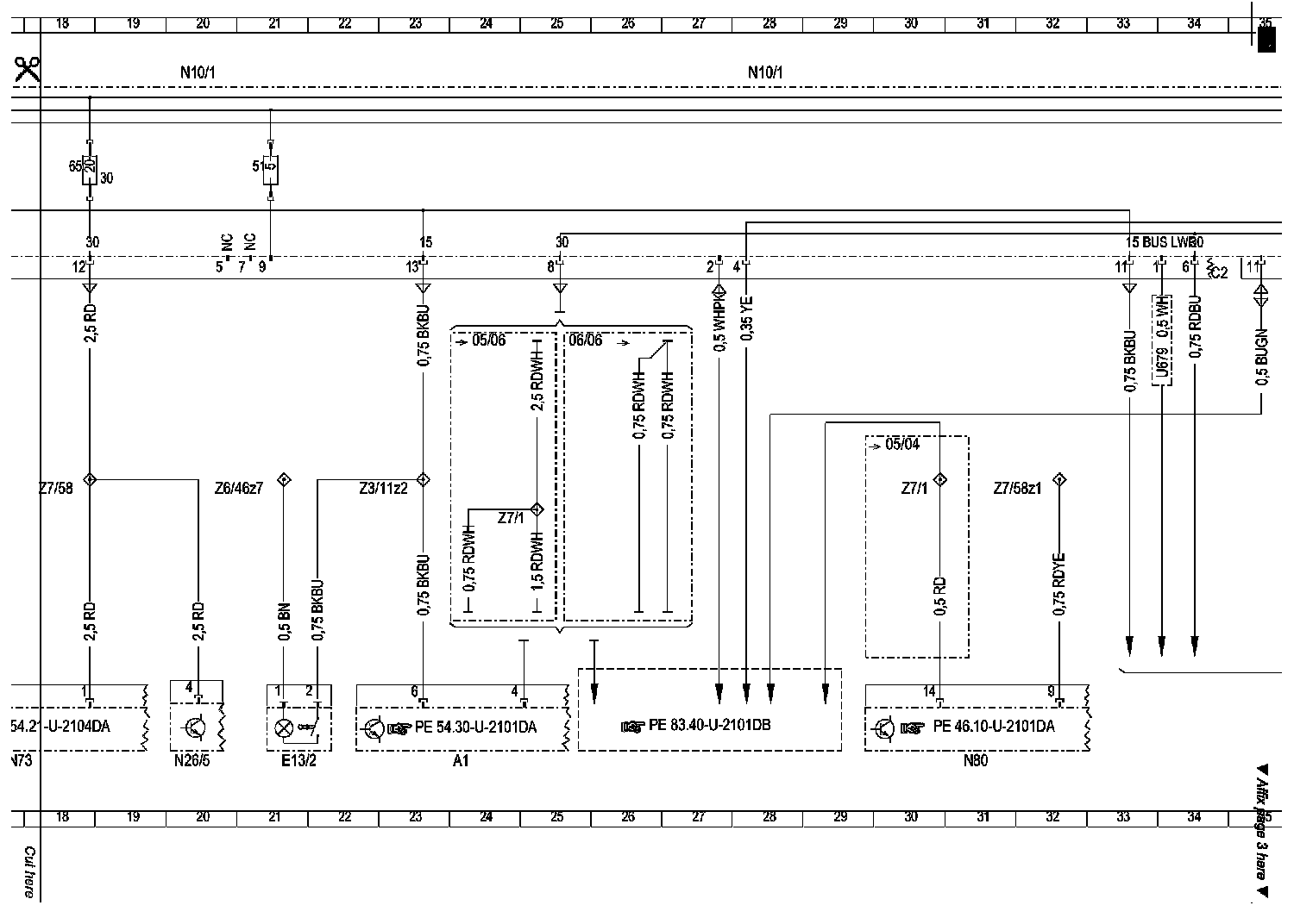Wiring Diagram of Driver-Side SAM With Fuse and Relay Module PE54.21-U-2109DA