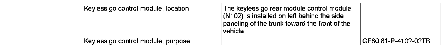 GF80.61-P-4105TB Keyless Go Control Module, Location/Purpose