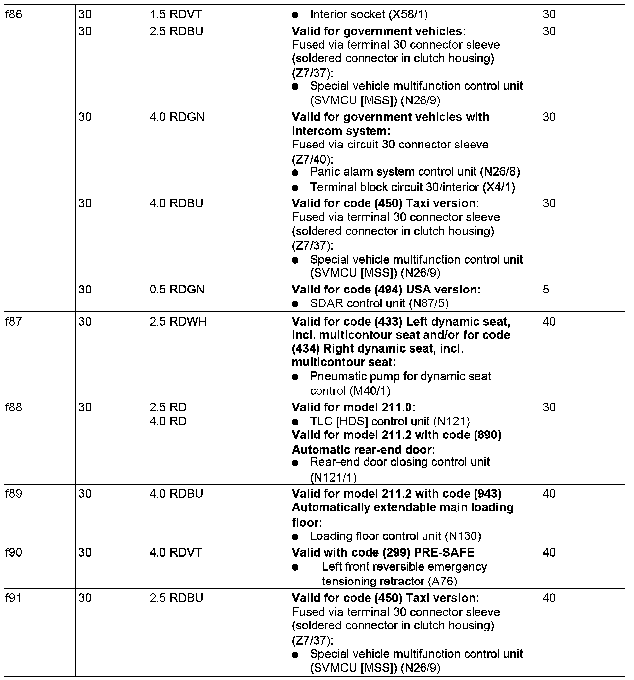 GF54.15-P-1256-08TC Fuse Assignment Of Rear Prefuse Box