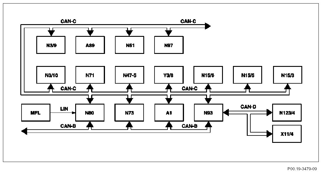 - CAN-C links the control units for the drive and chassis systems (e.g. engine, transmission control etc.).