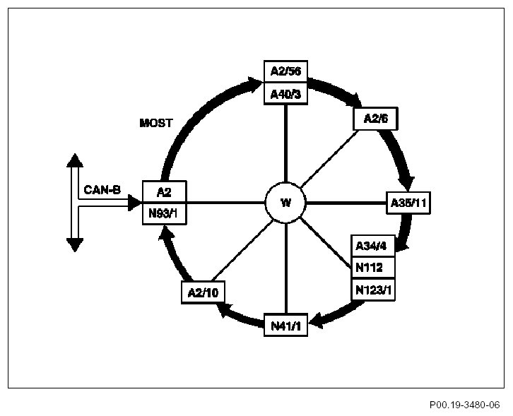 - MOST links the control units of the audio systems and navigation systems (e.g. telephone, voice control etc.) via a fiber optic cable.