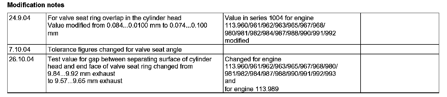 Check values for valve seat rings: