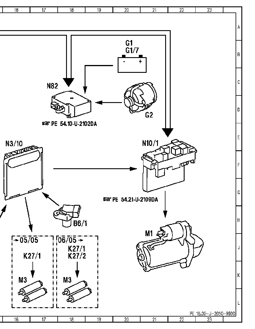 PE15.00-U-2050DD Electrical Function Diagram for Starter, Alternator, Battery