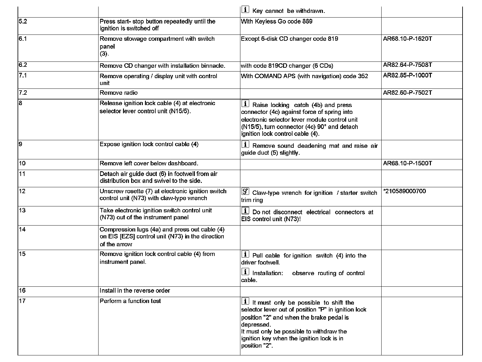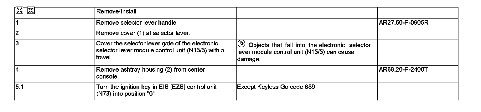 AR27.60-P-0122T Remove/install ignition lock control cable