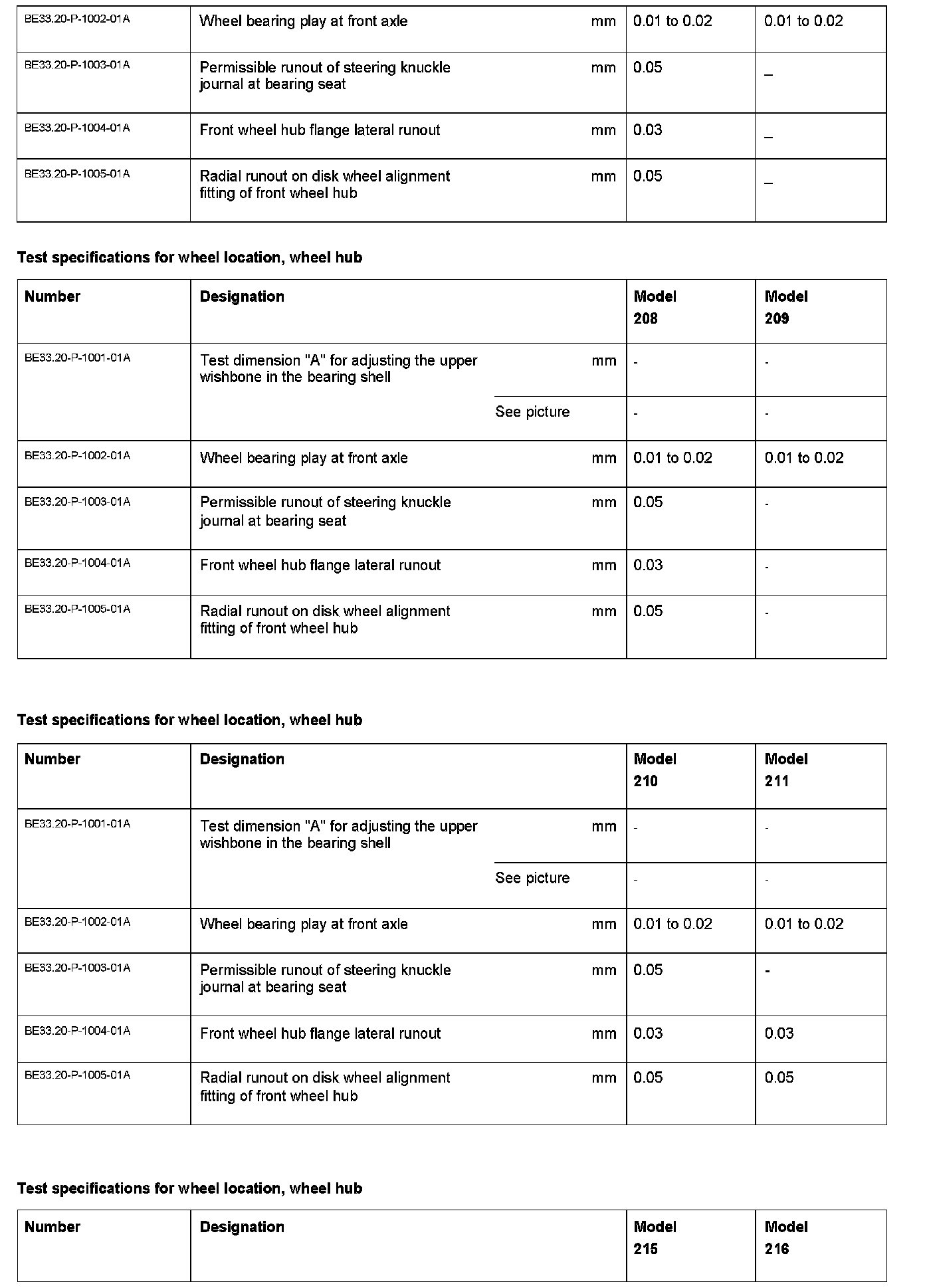 Model 129, 140, 170, 171, 202, 203, 208, hub 209, 210, 211, 215, 216, 219, 220, 221, 230