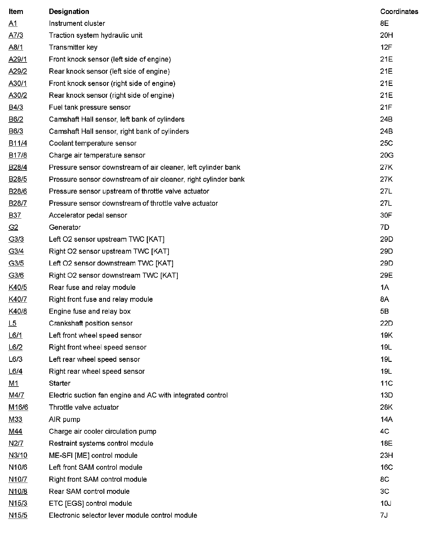 Component Locations: Component Location photographs can be found via their component names at the vehicle level. Component Locations