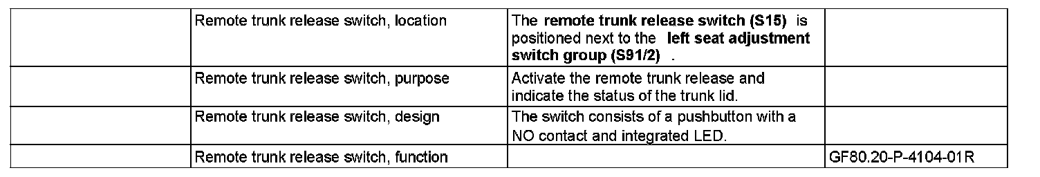 GF80.20-P-4104R Remote Trunk Release Switch, Location/Purpose/Design/Function