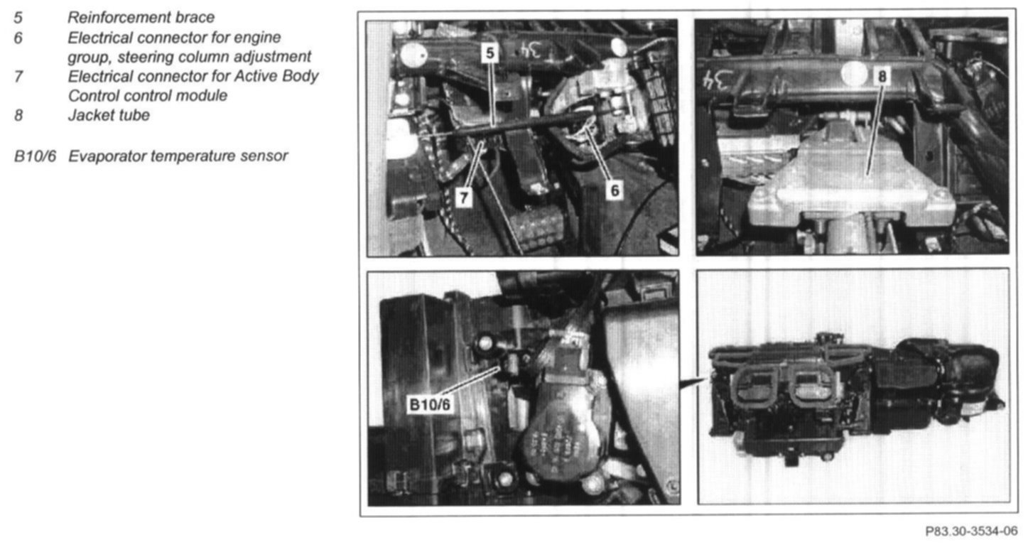 11 Detach electrical connectors (6) of engine group's steering-column adjustment