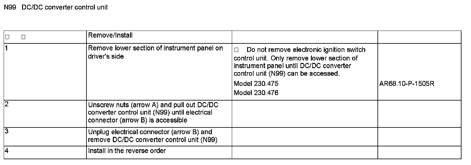 AR46.11-P-0001R Remove, install DC/DC converter control unit for steering/wheel heater