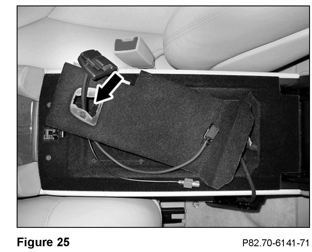 7. Connect the FAKRA antenna male connector of the contact plate to the FAKRA female connector ofthe center console harness (A, Figure 26).