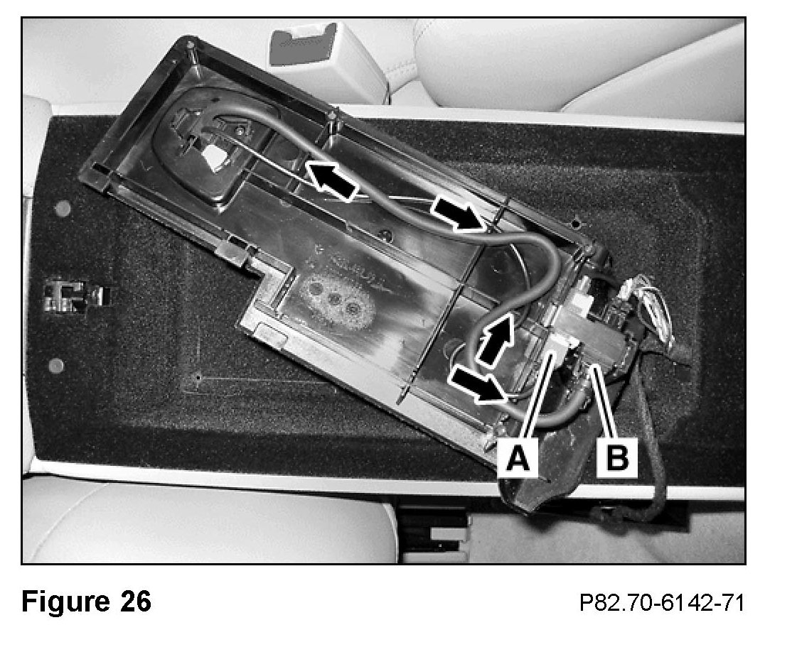 8. Connect the power supply male connector of the contact plate to the power supply female connector ofthe center console harness (B, Figure 26).