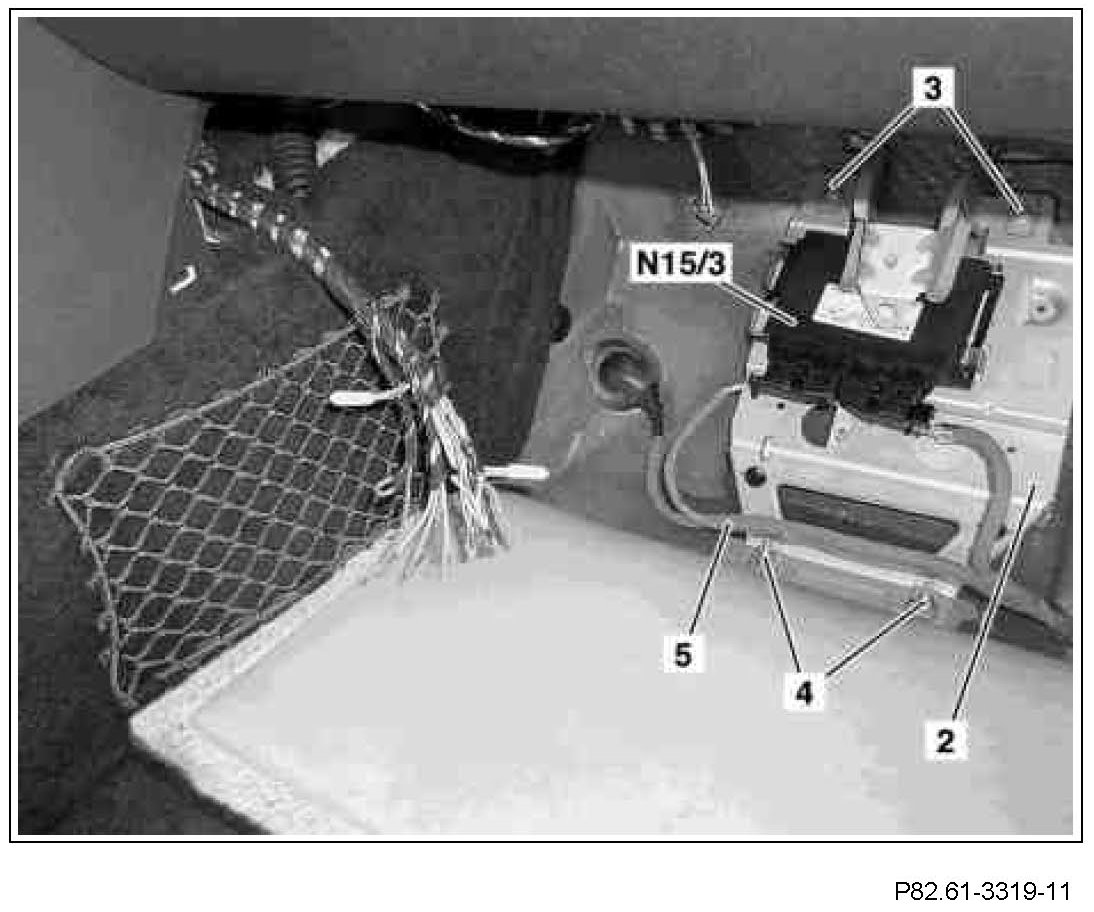 - Unlock retaining lugs and remove ETC control unit (N15/3) from bracket (2).