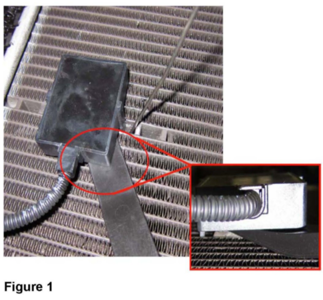 10. Install the PremAir sensor/tip and allow the adhesive to cure for 12 hours before installing the radiator into the vehicle. The PremAir sensor must be securely locked onto the radiator (Figure 5).