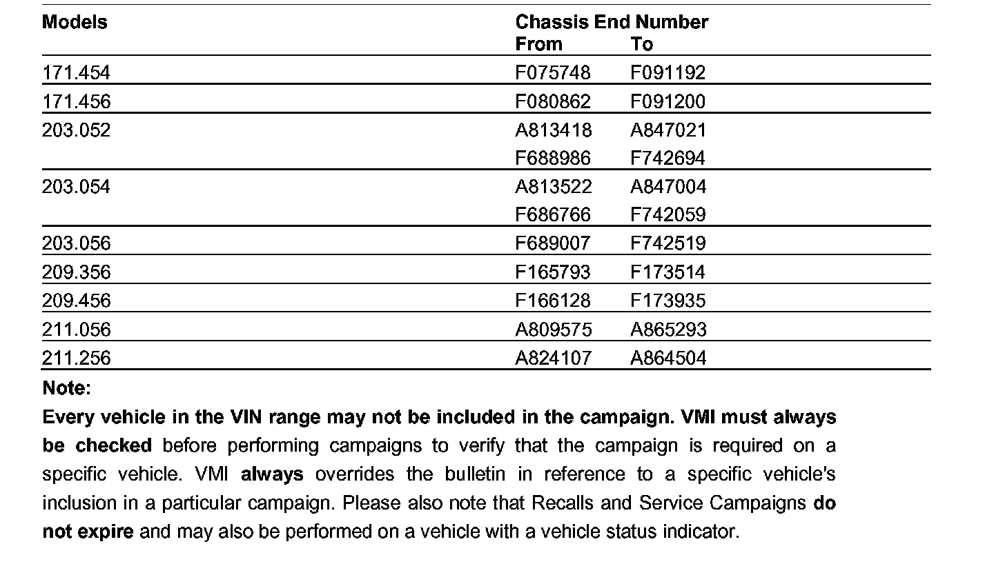 This Service Campaign has been initiated because DCAG has determined that on the affected vehicles (see VIN range) installing a modified version of software into the automatic transmission (722.9) control module using DAS version 09/05 or higher will improve the shifting characteristic of the transmission.
