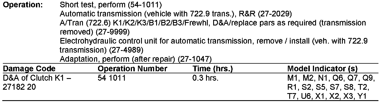 This work procedure only applies to the above fault codes and to transmissions with a production range of 7229xx 00 327088 to 7229xx 00 338693. For transmissions outside of the given production range, replace the electro-hydraulic control unit only. Refer to EPC for the specific application / part number.