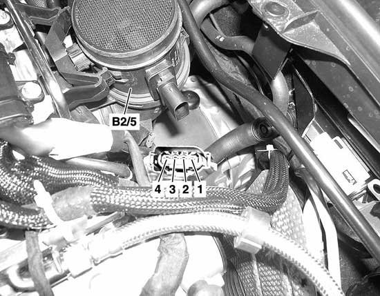 - Detach coupling at component B2/5 (Hot film mass air flow sensor).