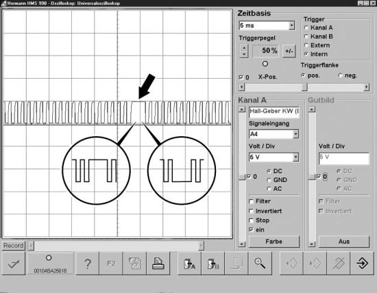 Warning!The rising signal edge in the gap (see arrow) may vary.Note
