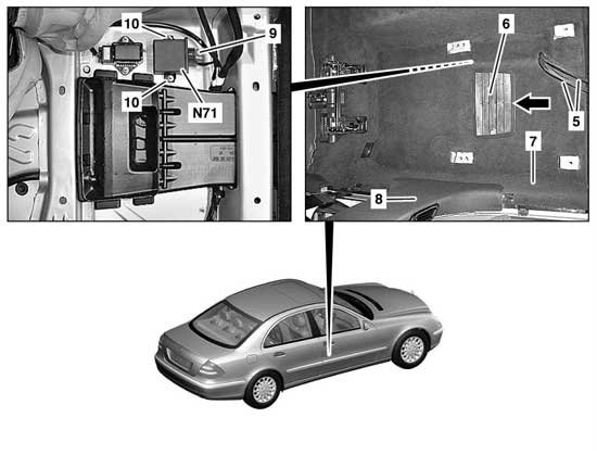 - Cables between component N10/1 (Driver-side SAM control unit with fuse and relay module) and control module N63/1 (DTR control module)5A