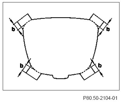 Place inner edge of reinforcing frame (1) at distance a, with the wider cutout of the reinforcing frame (1) facing in the direction of motion.